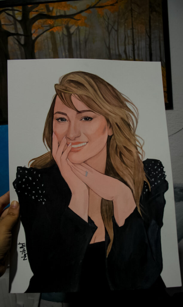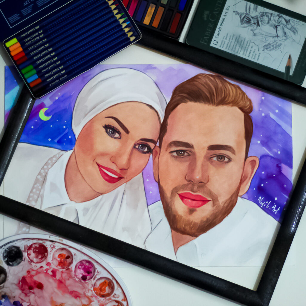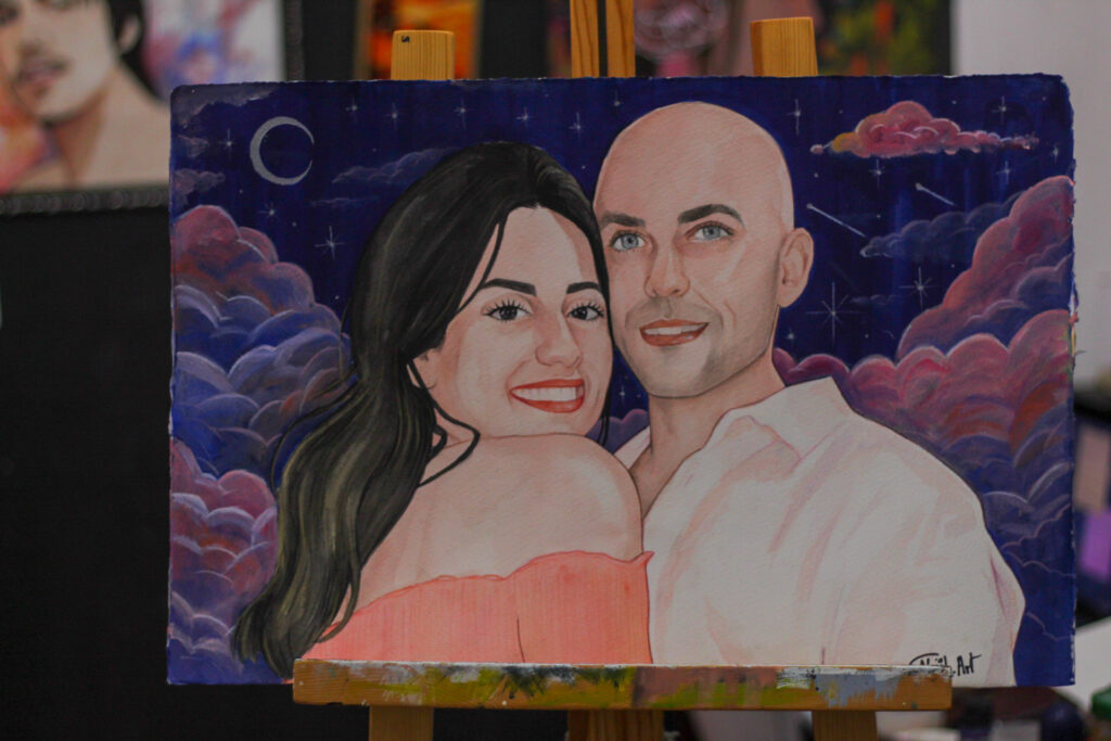 Dès notre premier échange jusqu’à la livraison finale des toiles, je garde les choses simples et détendues. Pas de pression, pas de poses forcées — juste des peintures authentiques qui capturent l’essence de votre jour.